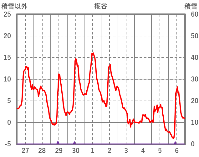| 日 | 時 | 気温 | 降水 | 風向/風速 | 日照 | 積雪 | 降雪 |
