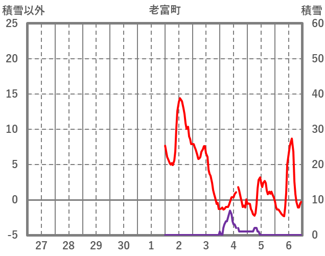 | 日 | 時 | 気温 | 降水 | 風向/風速 | 日照 | 積雪 | 降雪 |