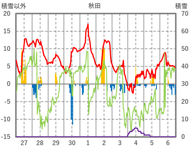 | 日 | 時 | 気温 | 降水 | 風向/風速 | 日照 | 積雪 | 降雪 |