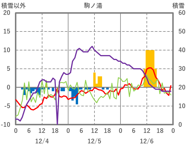 | 日 | 時 | 気温 | 降水 | 風向/風速 | 日照 | 積雪 | 降雪 |