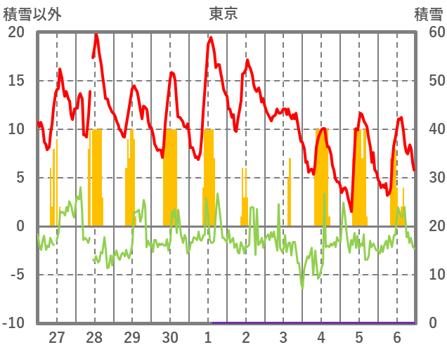 | 日 | 時 | 気温 | 降水 | 風向/風速 | 日照 | 積雪 | 降雪 |