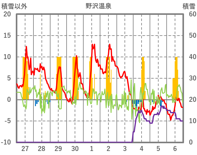 | 日 | 時 | 気温 | 降水 | 風向/風速 | 日照 | 積雪 | 降雪 |