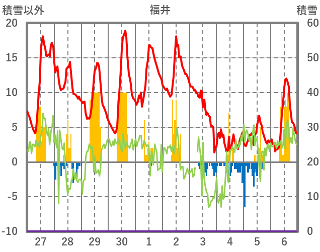 | 日 | 時 | 気温 | 降水 | 風向/風速 | 日照 | 積雪 | 降雪 |