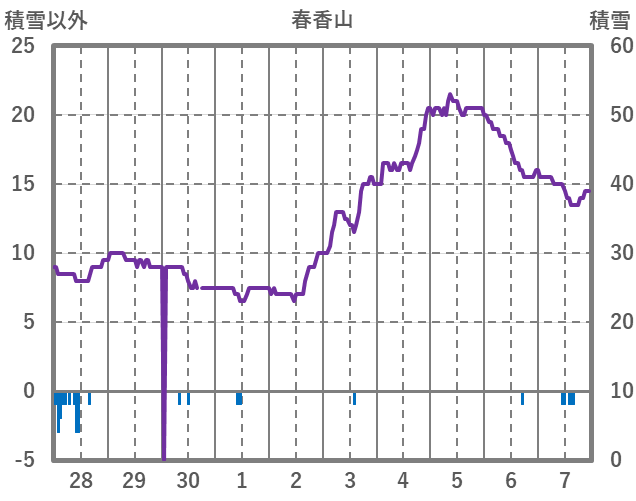 | 日 | 時 | 気温 | 降水 | 風向/風速 | 日照 | 積雪 | 降雪 |