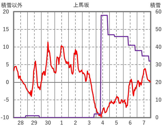| 日 | 時 | 気温 | 降水 | 風向/風速 | 日照 | 積雪 | 降雪 |