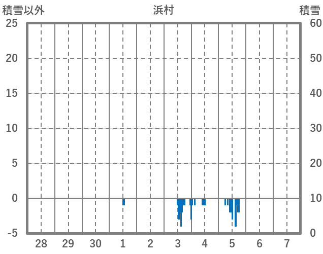 | 日 | 時 | 気温 | 降水 | 風向/風速 | 日照 | 積雪 | 降雪 |