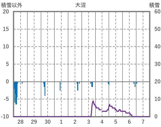 | 日 | 時 | 気温 | 降水 | 風向/風速 | 日照 | 積雪 | 降雪 |