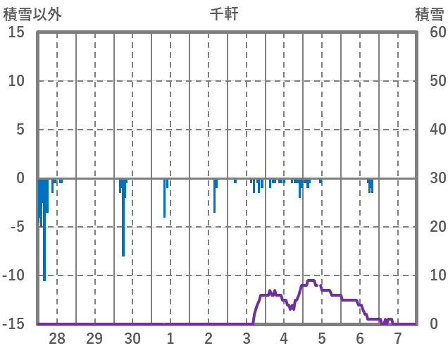 | 日 | 時 | 気温 | 降水 | 風向/風速 | 日照 | 積雪 | 降雪 |