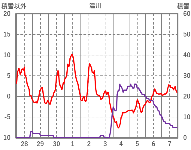 | 日 | 時 | 気温 | 降水 | 風向/風速 | 日照 | 積雪 | 降雪 |
