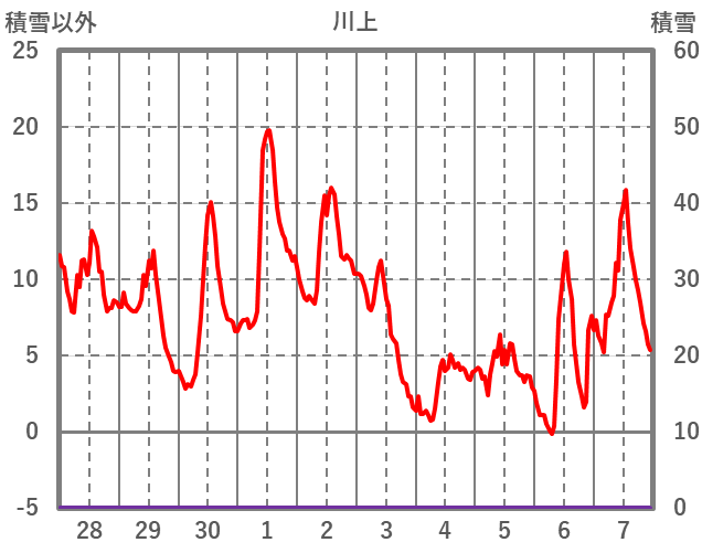 | 日 | 時 | 気温 | 降水 | 風向/風速 | 日照 | 積雪 | 降雪 |