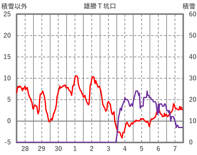 | 日 | 時 | 気温 | 降水 | 風向/風速 | 日照 | 積雪 | 降雪 |