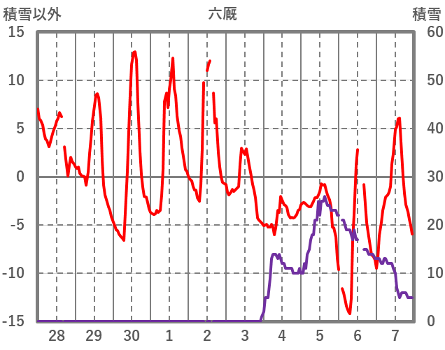 | 日 | 時 | 気温 | 降水 | 風向/風速 | 日照 | 積雪 | 降雪 |