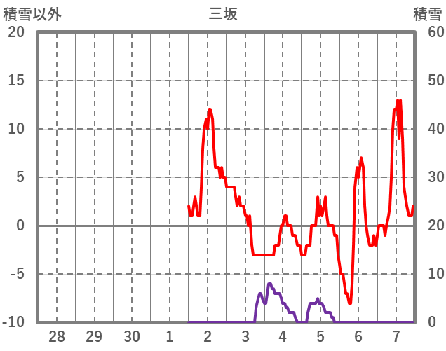 | 日 | 時 | 気温 | 降水 | 風向/風速 | 日照 | 積雪 | 降雪 |