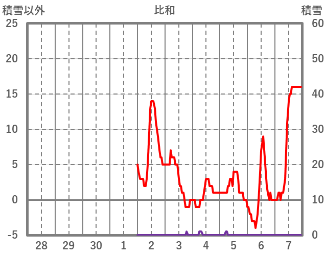 | 日 | 時 | 気温 | 降水 | 風向/風速 | 日照 | 積雪 | 降雪 |
