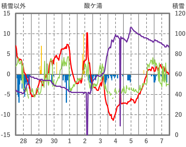 | 日 | 時 | 気温 | 降水 | 風向/風速 | 日照 | 積雪 | 降雪 |