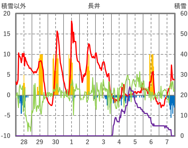 | 日 | 時 | 気温 | 降水 | 風向/風速 | 日照 | 積雪 | 降雪 |