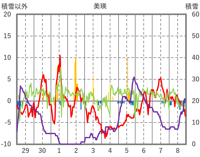 | 日 | 時 | 気温 | 降水 | 風向/風速 | 日照 | 積雪 | 降雪 |