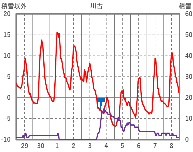 | 日 | 時 | 気温 | 降水 | 風向/風速 | 日照 | 積雪 | 降雪 |