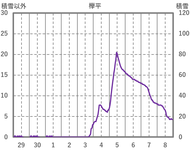 | 日 | 時 | 気温 | 降水 | 風向/風速 | 日照 | 積雪 | 降雪 |