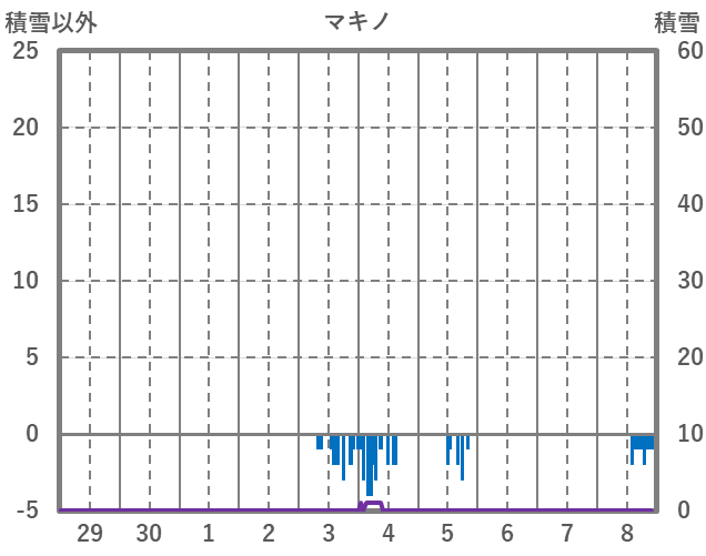 | 日 | 時 | 気温 | 降水 | 風向/風速 | 日照 | 積雪 | 降雪 |