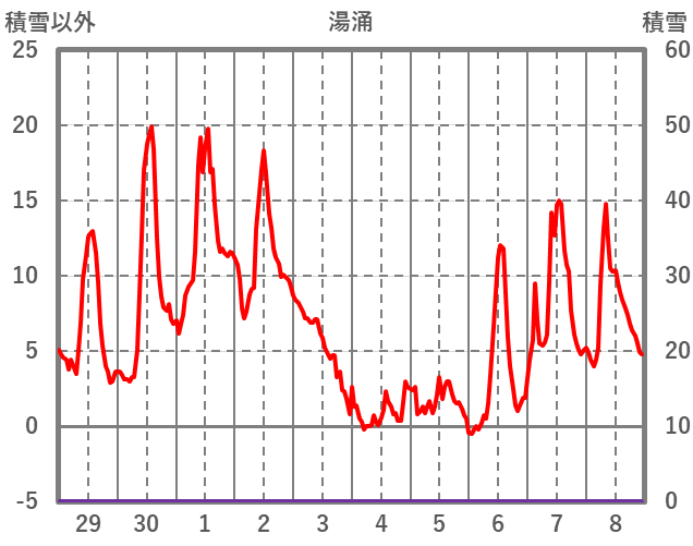 | 日 | 時 | 気温 | 降水 | 風向/風速 | 日照 | 積雪 | 降雪 |