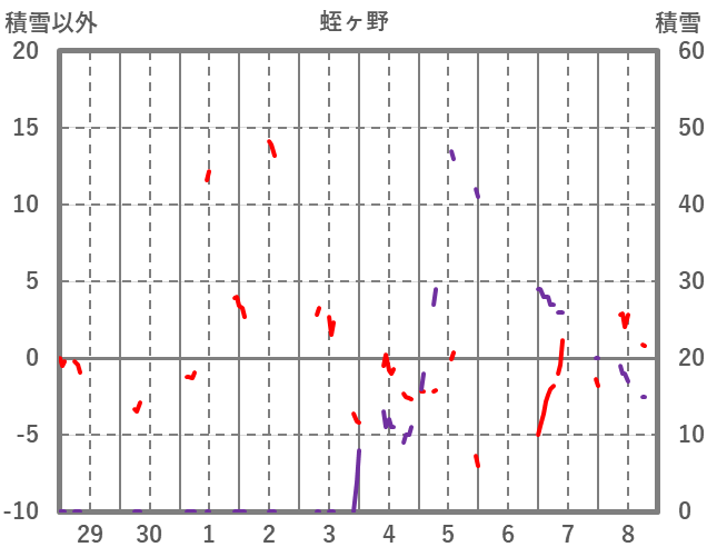 | 日 | 時 | 気温 | 降水 | 風向/風速 | 日照 | 積雪 | 降雪 |