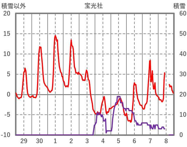 | 日 | 時 | 気温 | 降水 | 風向/風速 | 日照 | 積雪 | 降雪 |