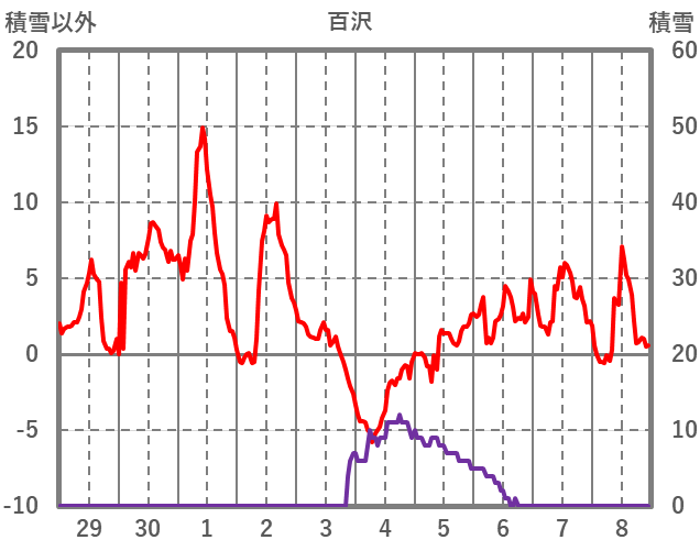 | 日 | 時 | 気温 | 降水 | 風向/風速 | 日照 | 積雪 | 降雪 |