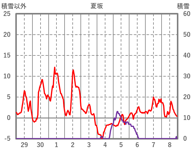 | 日 | 時 | 気温 | 降水 | 風向/風速 | 日照 | 積雪 | 降雪 |