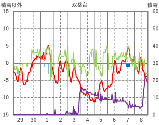 | 日 | 時 | 気温 | 降水 | 風向/風速 | 日照 | 積雪 | 降雪 |