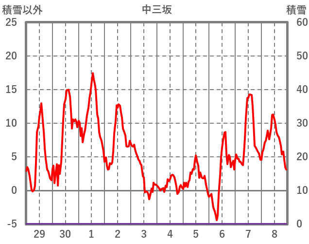 | 日 | 時 | 気温 | 降水 | 風向/風速 | 日照 | 積雪 | 降雪 |