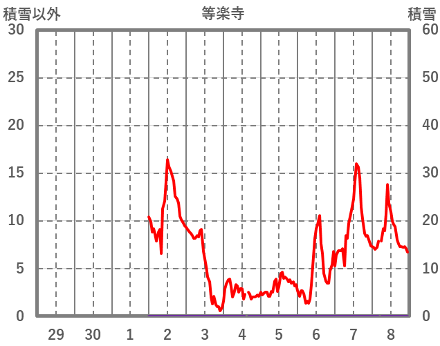 | 日 | 時 | 気温 | 降水 | 風向/風速 | 日照 | 積雪 | 降雪 |