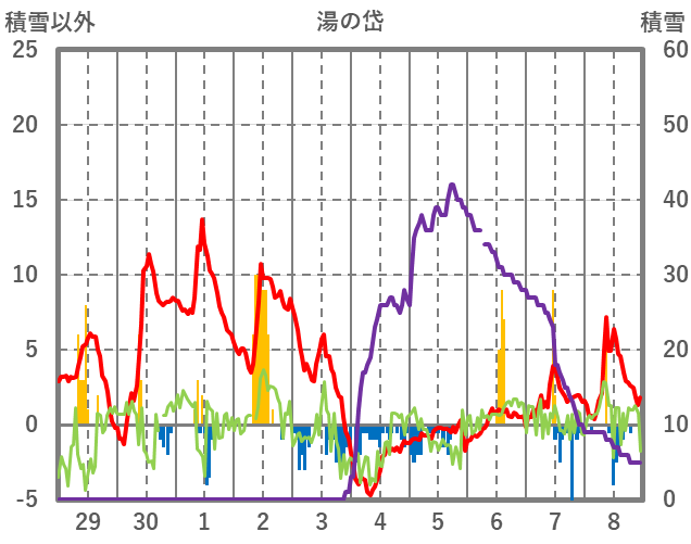 | 日 | 時 | 気温 | 降水 | 風向/風速 | 日照 | 積雪 | 降雪 |