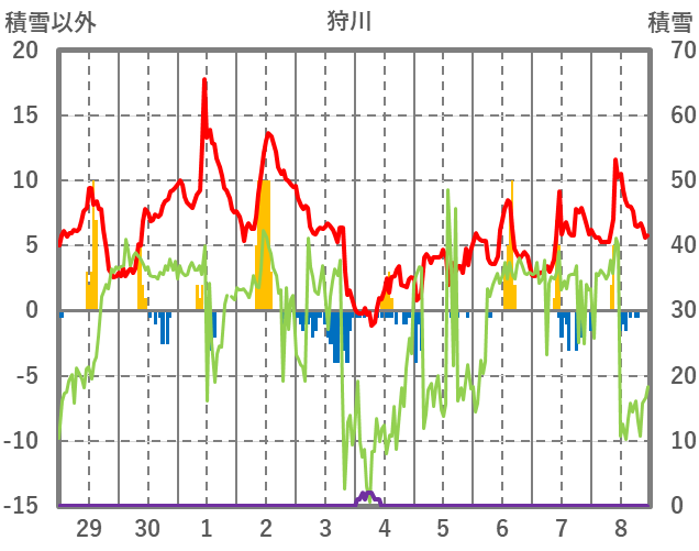 | 日 | 時 | 気温 | 降水 | 風向/風速 | 日照 | 積雪 | 降雪 |