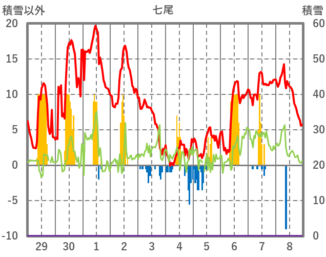 | 日 | 時 | 気温 | 降水 | 風向/風速 | 日照 | 積雪 | 降雪 |