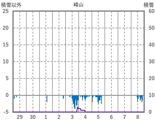 | 日 | 時 | 気温 | 降水 | 風向/風速 | 日照 | 積雪 | 降雪 |