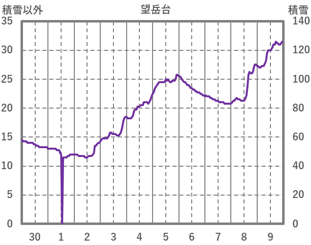 | 日 | 時 | 気温 | 降水 | 風向/風速 | 日照 | 積雪 | 降雪 |