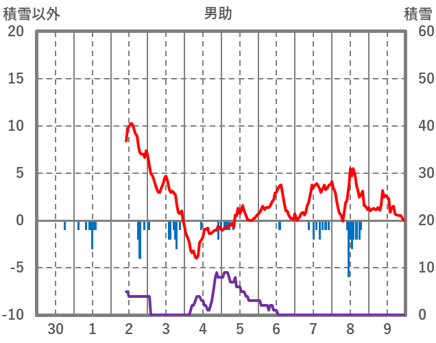 | 日 | 時 | 気温 | 降水 | 風向/風速 | 日照 | 積雪 | 降雪 |