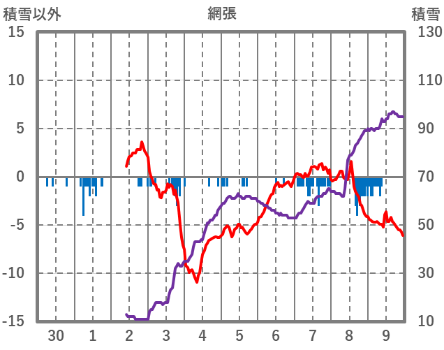 | 日 | 時 | 気温 | 降水 | 風向/風速 | 日照 | 積雪 | 降雪 |