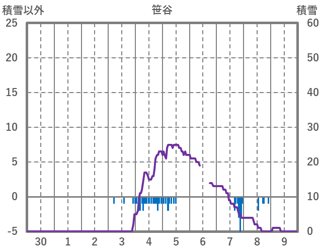 | 日 | 時 | 気温 | 降水 | 風向/風速 | 日照 | 積雪 | 降雪 |