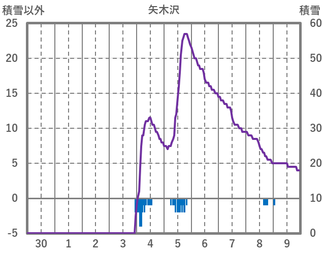 | 日 | 時 | 気温 | 降水 | 風向/風速 | 日照 | 積雪 | 降雪 |