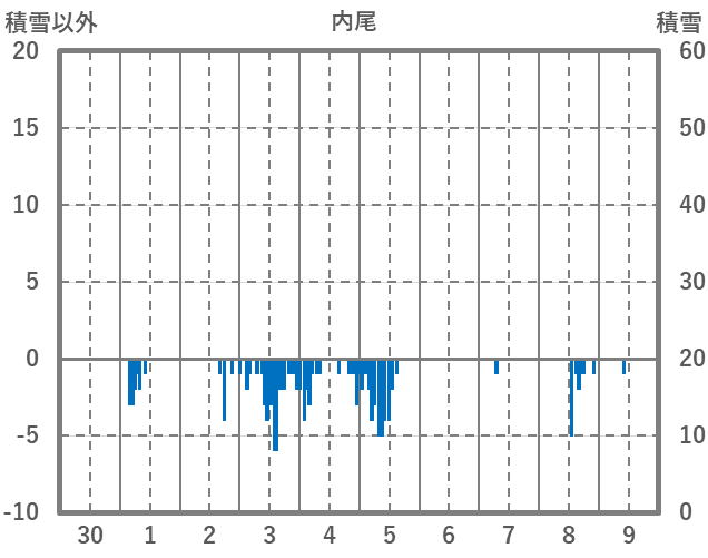 | 日 | 時 | 気温 | 降水 | 風向/風速 | 日照 | 積雪 | 降雪 |