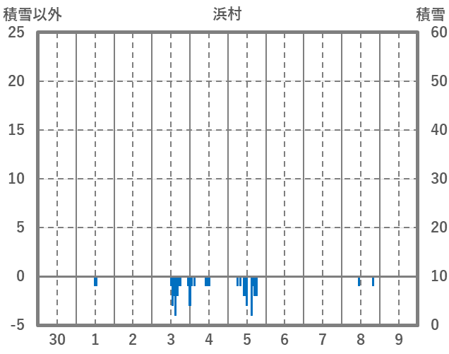 | 日 | 時 | 気温 | 降水 | 風向/風速 | 日照 | 積雪 | 降雪 |