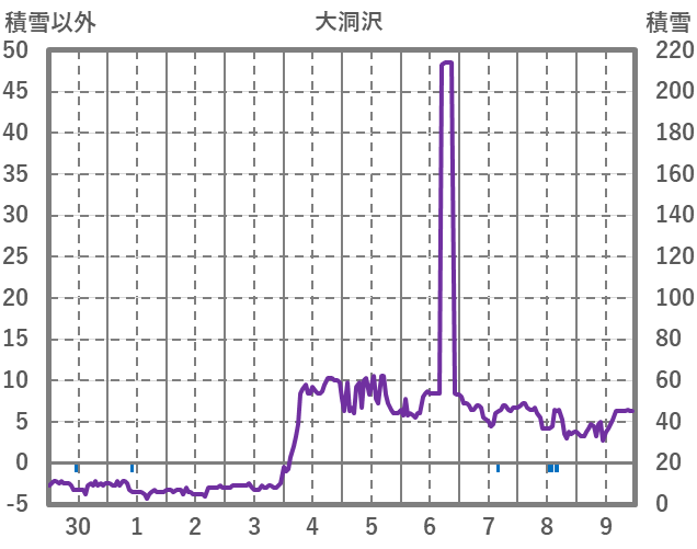 | 日 | 時 | 気温 | 降水 | 風向/風速 | 日照 | 積雪 | 降雪 |