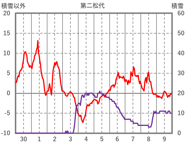 | 日 | 時 | 気温 | 降水 | 風向/風速 | 日照 | 積雪 | 降雪 |