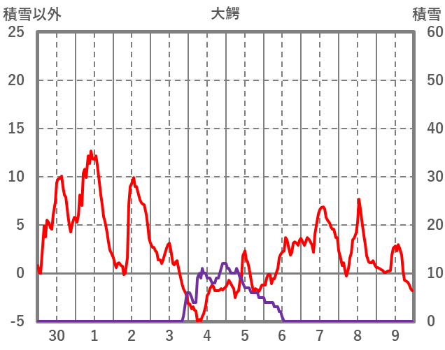 | 日 | 時 | 気温 | 降水 | 風向/風速 | 日照 | 積雪 | 降雪 |