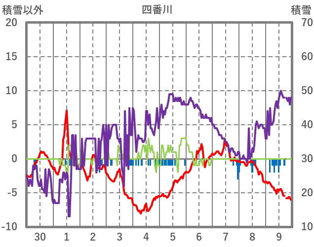| 日 | 時 | 気温 | 降水 | 風向/風速 | 日照 | 積雪 | 降雪 |