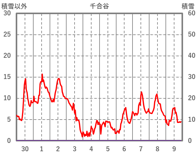 | 日 | 時 | 気温 | 降水 | 風向/風速 | 日照 | 積雪 | 降雪 |