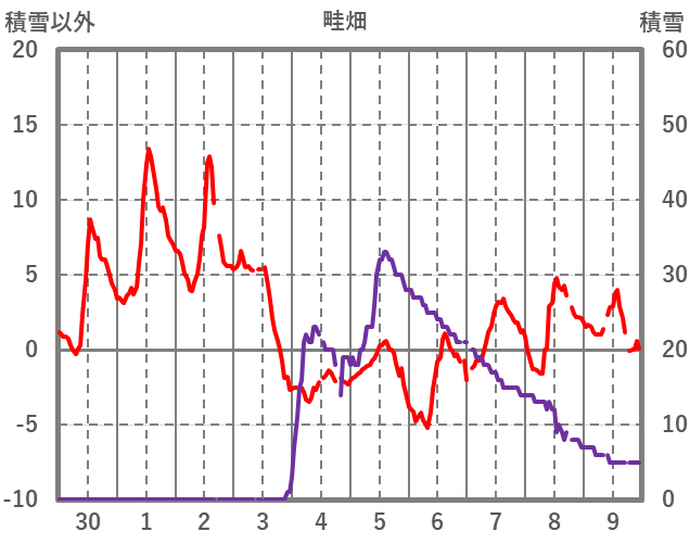 | 日 | 時 | 気温 | 降水 | 風向/風速 | 日照 | 積雪 | 降雪 |