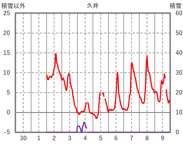 | 日 | 時 | 気温 | 降水 | 風向/風速 | 日照 | 積雪 | 降雪 |
